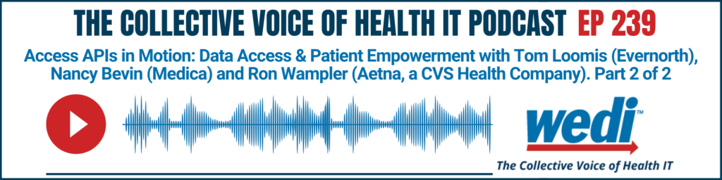 Knowledge Center Episode 238, Access APIs in Motion: Data Access & Patient Empowerment (Part 1 of 2) March 6, 2026 From WEDI’s 2026 Winter Forum, Michael chats with three payer representatives who discuss how access APIs are improving the patient experience by making data easier to access, use, and share across care journeys. Tom Loomis,…